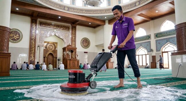 Sementara itu, masjid biasanya menggunakan karpet dalam jumlah besar. Karpet masjid sering digunakan oleh banyak orang setiap hari sehingga sangat rentan terhadap debu dan kotoran. Oleh karena itu, pencucian karpet masjid secara berkala menjadi hal yang sangat penting untuk menjaga kenyamanan jamaah.